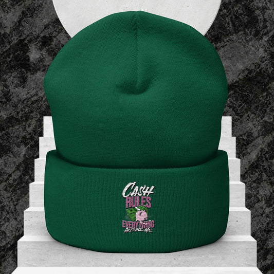 Stylische Unisex Beanie – Umgeschlagen mit 'Cash Rules Everything Around Me' Design – Trendige Streetwear Mütze