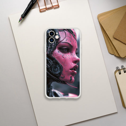 Sassy Pink Robot Girl Flexi Handyhülle - Transparent Handyhülle für iPhone & Samsung . Flexi case