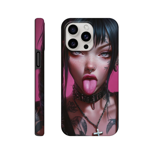Stylische Iphone-Samsung Handyhülle – Gothic Girl mit Piercings, Tattoos & Kreuzanhänger – Passend für iPhone & Samsung