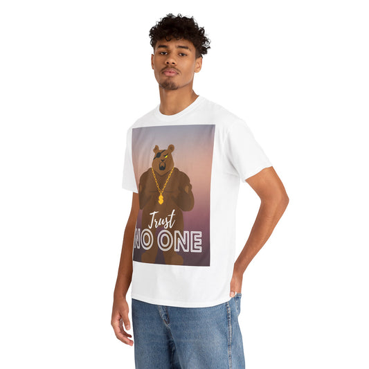 Unisex T-Shirt aus schwerer Baumwolle, (Trust No One) Caption, Bären T-Shirt, Gansta Bär Shirt